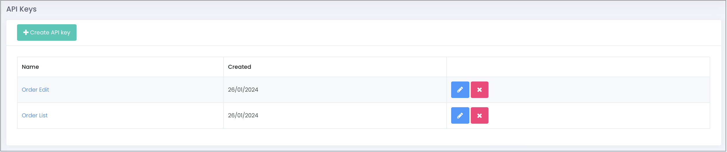 API key generation