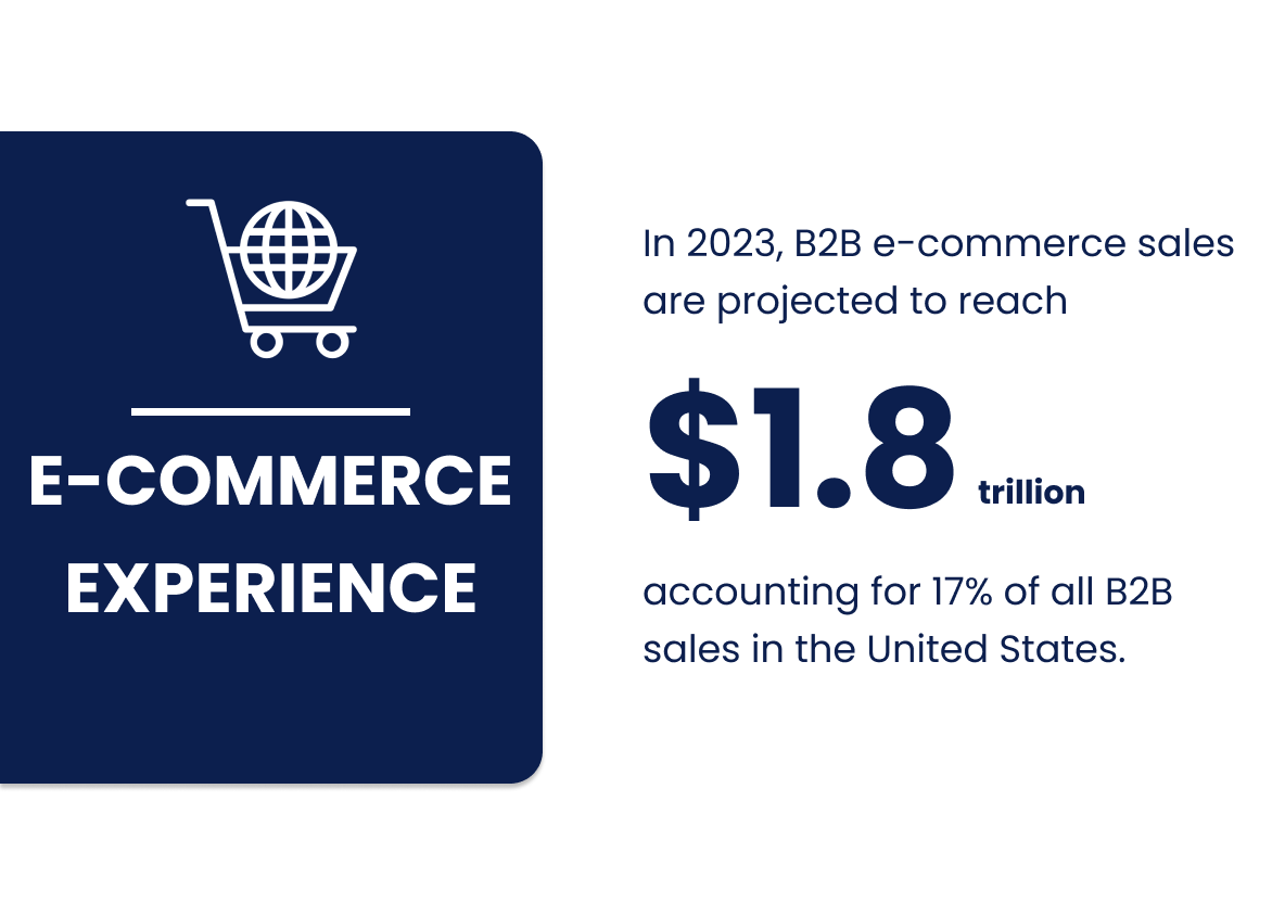 In addition, Forrester forecasts that in 2023, US B2B eCommerce sales will reach $1.8 trillion, accounting for 17% of all B2B sales in the country.